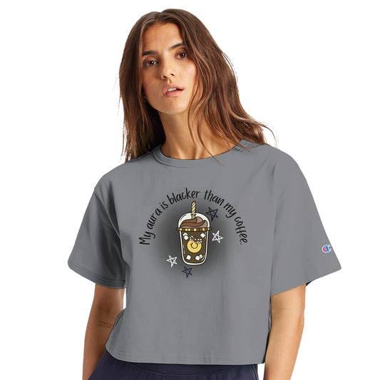 Aura blacker than coffee | Cropped Heritage Crewneck T-Shirt